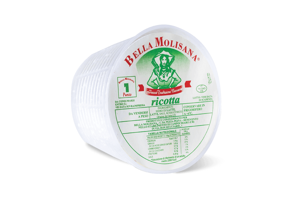 Do you love something sweet and delicate? You must try Bella Molisana Ricotta. A very fresh delicacy and full of protein, containing the proteins of milk whey, with a higher biologic value than those of cheese or meat. It is in low in fat and calories. Our cheesemaker makes the ricotta by using a skimmer to obtain the proteins of the milk whey, which separates from the curd during Bella Molisana cheesemaking; he puts it into the strainer, allowing the dripping out and the forming of the classic cone shape. Ricotta is a great food, really loved by children. It can be eaten as a second course or put in ravioli and tortellini or savoury cakes and tasty soufflés. It is also delicious as a sweet dish, melted with honey and chocolate flakes or as cake filling. You can find sliced or whole 400g Bella Molisana ricotta at the gastronomy counter. Simple and Natural